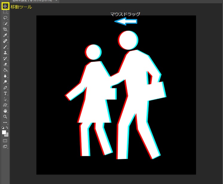 3. チャンネルごとに移動ツールで画像全体をずらす